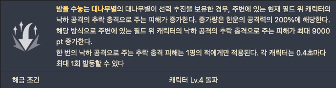 파티 캐릭터들의 낙공 피해가 증가합니다.