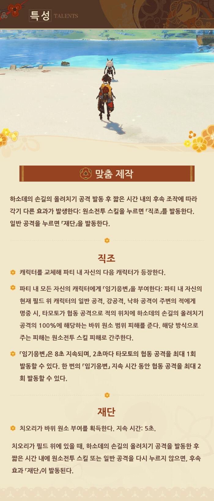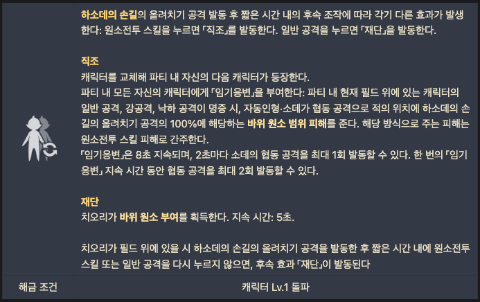 원소 스킬 및 일반 공격을 누르지 않으면 [재단]이 발동됩니다.