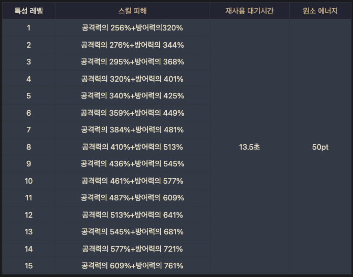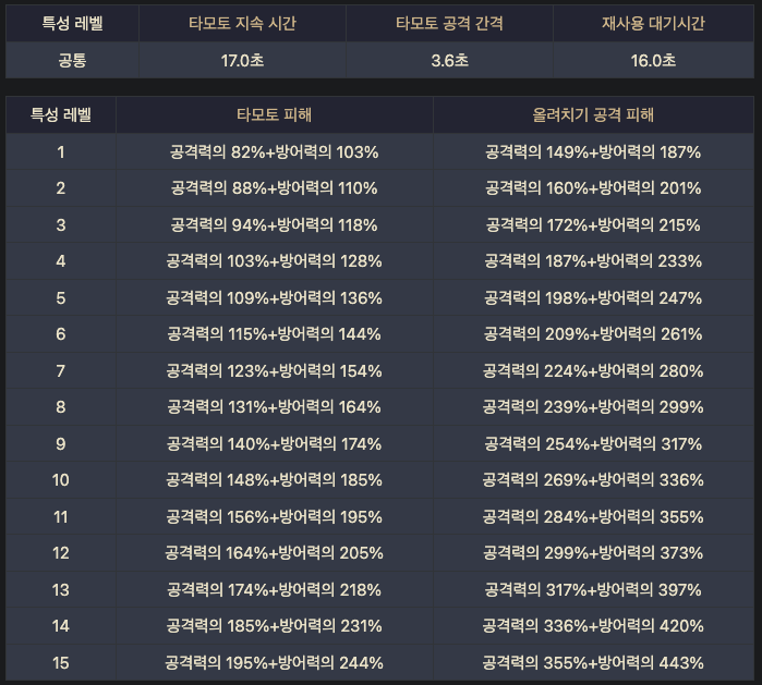 지속 시간 8초에 2초마다 최대 1회 발동.