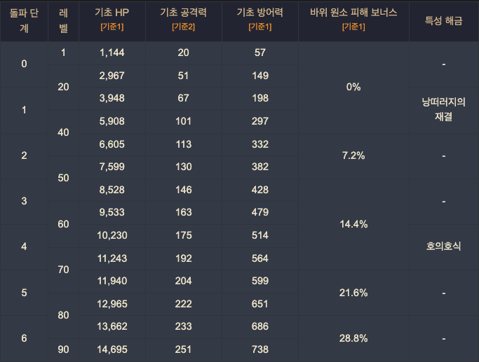 다만 돌파시 상승하는 고유 스텟이 바위 원소 피해라