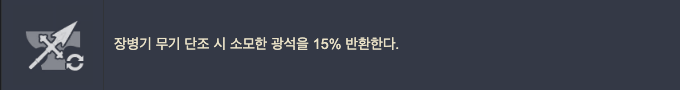 생활 특성은 장병기 무기 단조 시 소모한 광석을 15% 반환해 줍니다.