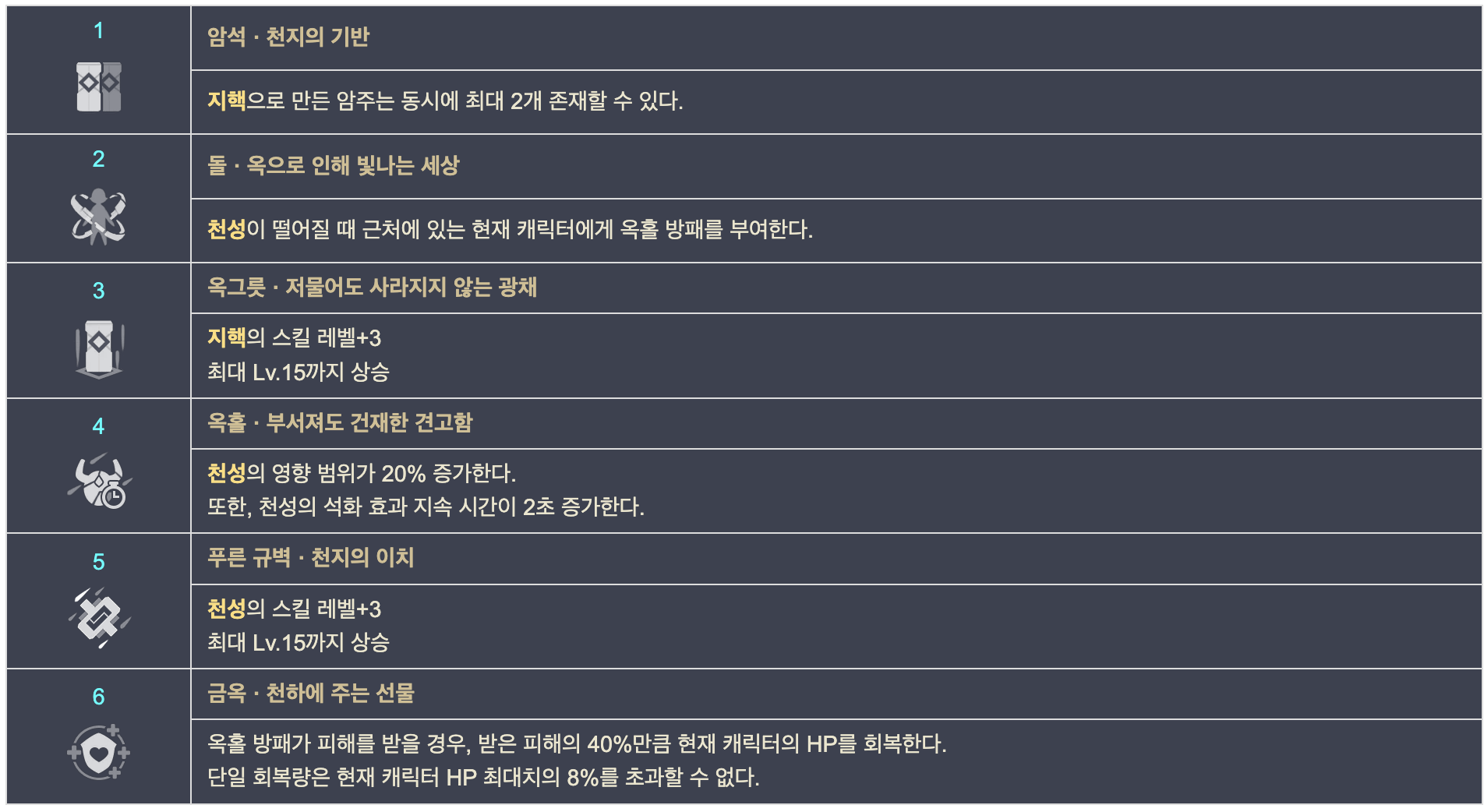 기둥은 스스로 공명하여 일정 범위에 바위원소 피해를 줍니다.