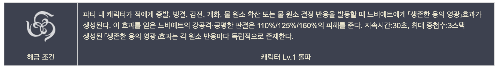 물 원소 반응이 일어났을 때 느비예트의 핵심