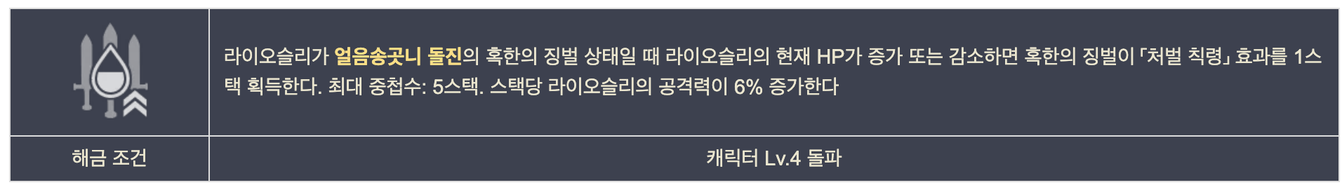 hp가 60% 미만일시 [은혜로운 훈계] 획득.