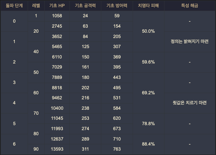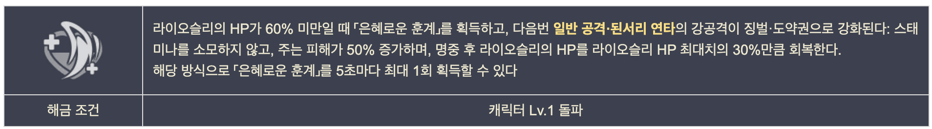 hp가 60% 미만일시 [은혜로운 훈계] 획득.