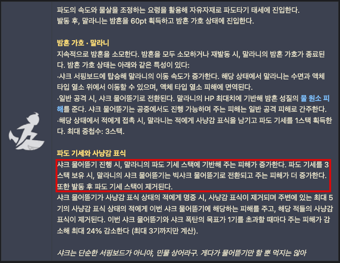 저렇게 상어에 탄 상태에서 물어뜯는 스킬.
