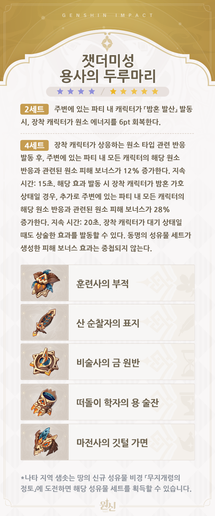 또한 일반 공격이 위 설명과 같이 바위 원소 피해로 바뀐다.