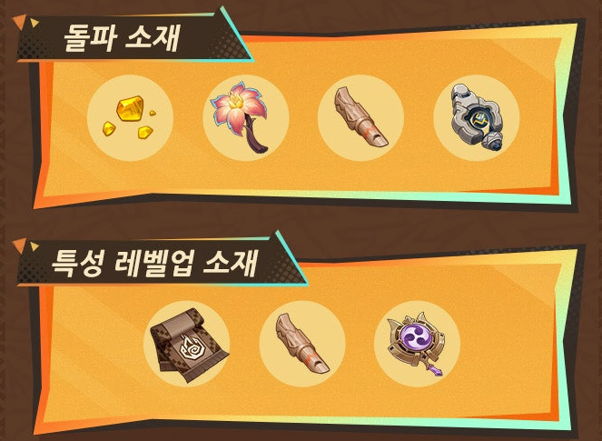 특성 레벨업 재료는 왼쪽부터