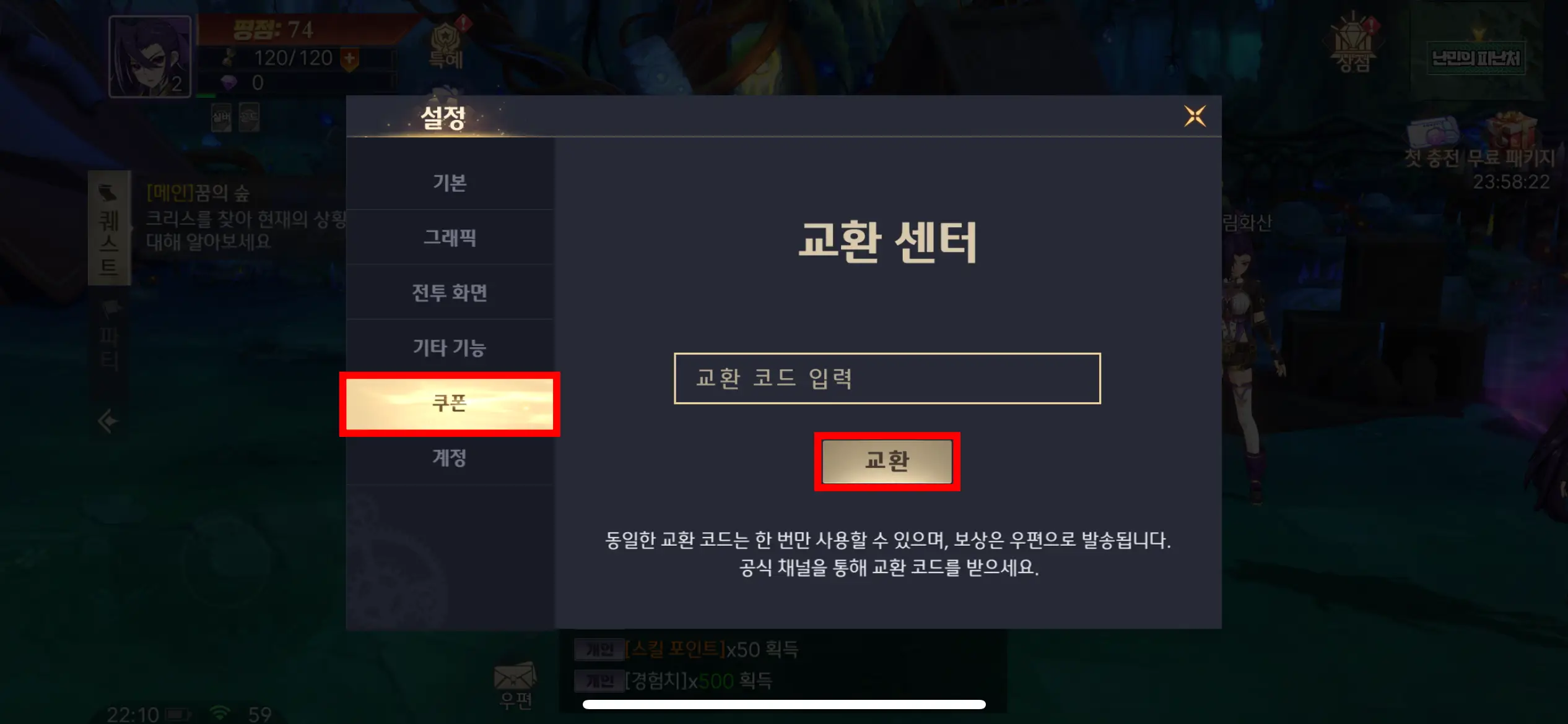 쿠폰 코드를 입력하고 교환을 누르면 됩니다.