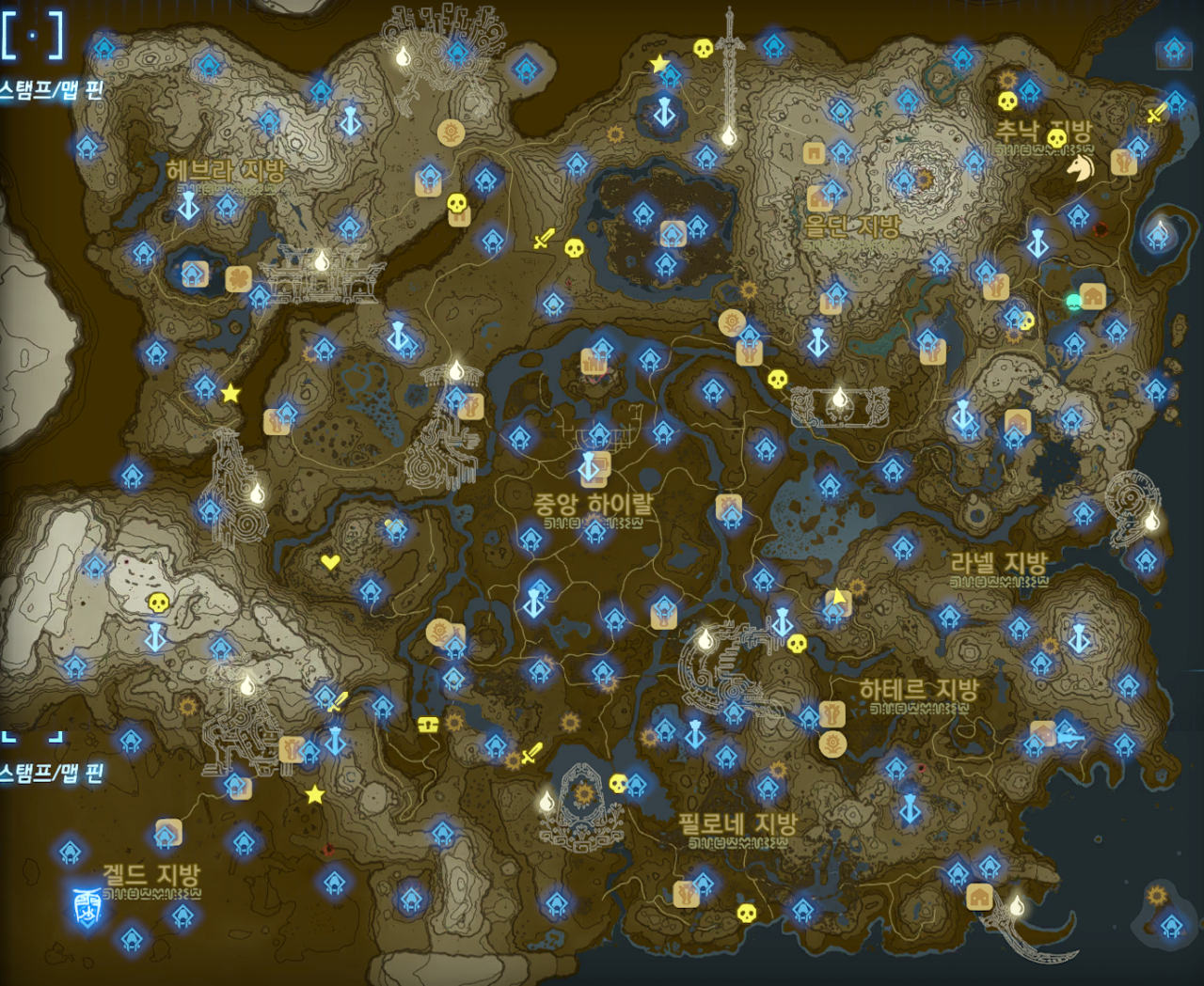 오늘은 일단 젤다를 하면 필수적으로 찾아야 할 사당 위치부터 올려놓겠습니다.