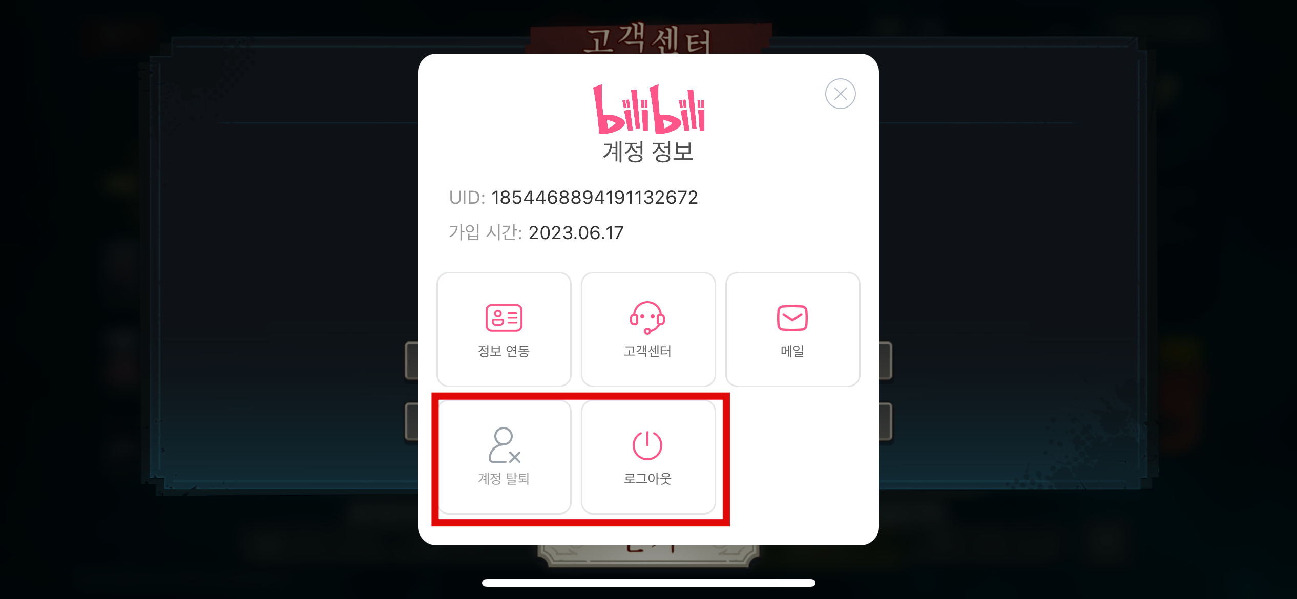 마지막에 계정 탈퇴와 로그아웃이 있어요.