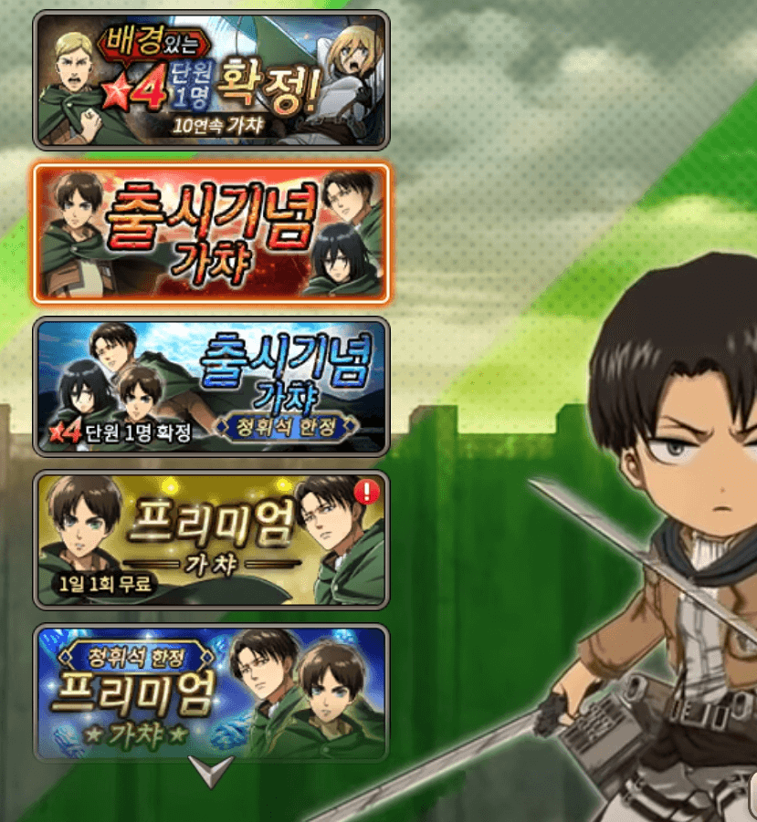 진격의 거인 한국 캐릭터 티어 및 리세마라 공략