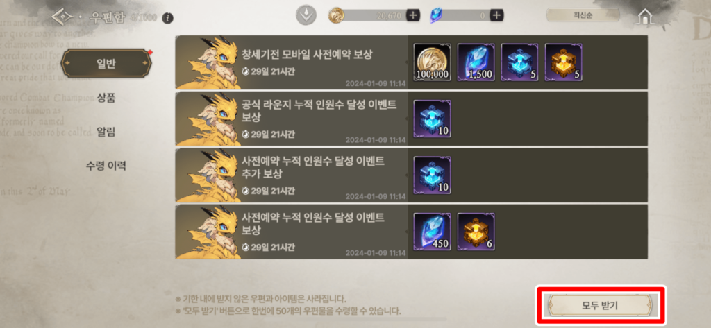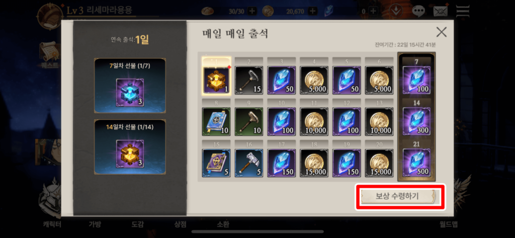 4. 사전예약 보상 + 출석 이벤트 보상 + 퀘스트 보상까지