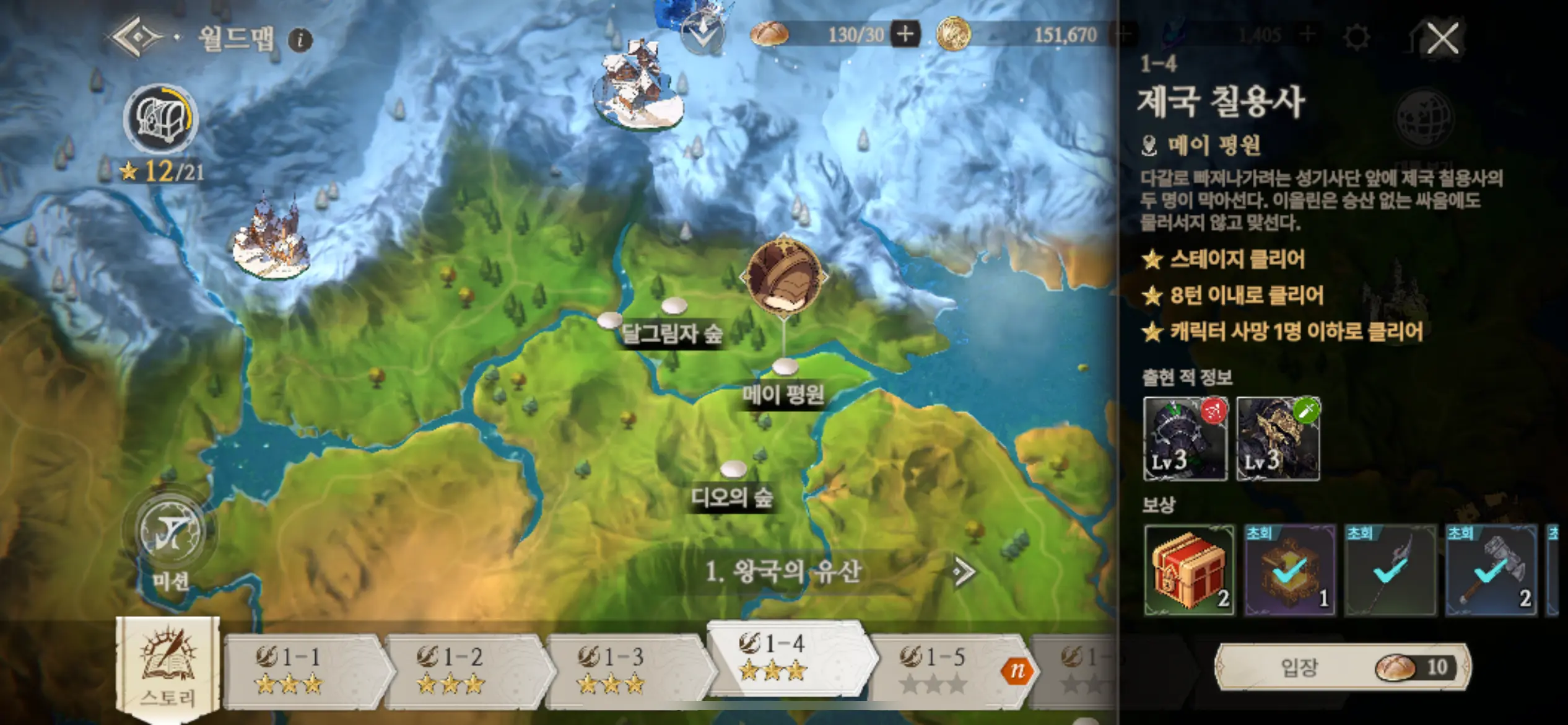 3. 튜토리얼을 포함하여 1-4 스테이지까지