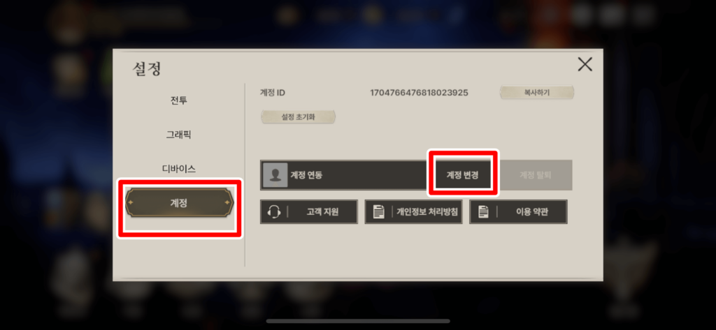 설정 - 계정 - 계정변경 - 로그아웃