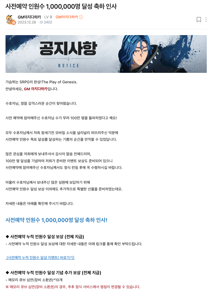 오늘은 창세기전 모바일 아수라 프로젝트의