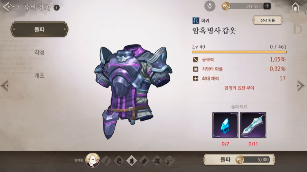 장비는 돌파를 하면 여러 옵션이 붙습니다.