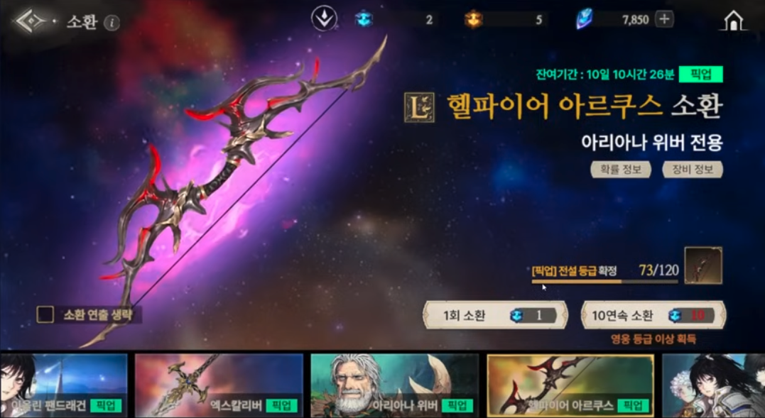 왜냐하면 상시에서는 전설 등급이 뜨면