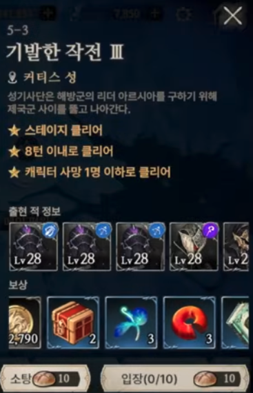 1. 승리 조건과 3성 클리어 조건은