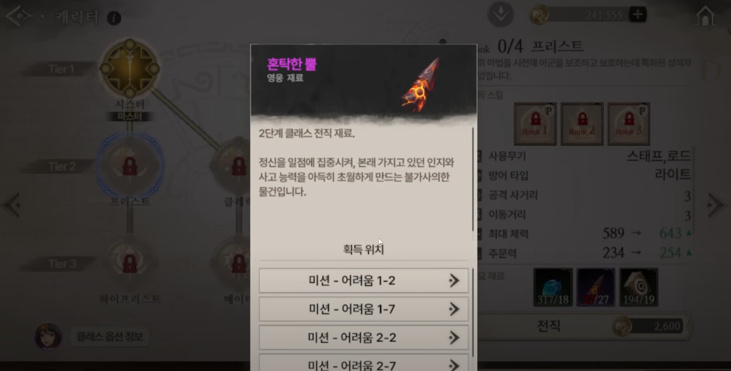 클래스를 빨리 올려주는 아이템이니 꼭 얻으시는 걸 추천
