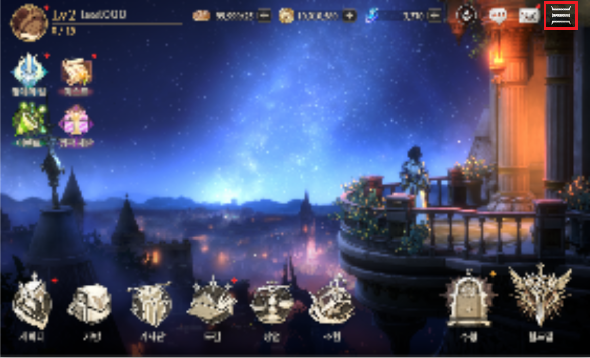 1. 게임 우측 상단 메뉴 버튼 [☰] 선택