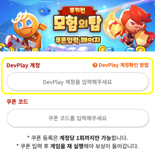 쿠키런 모험의 탑 쿠폰 입력 방법