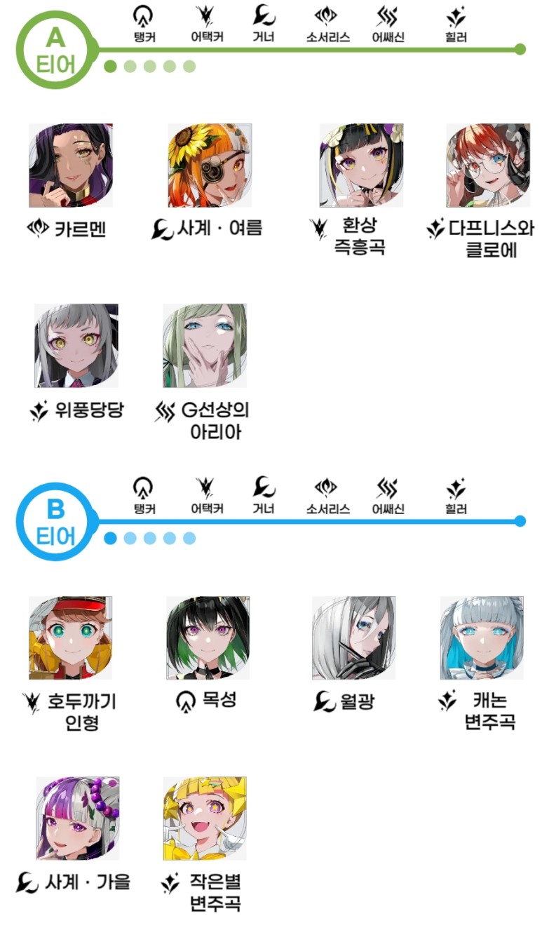 지금 확정적으로 티어표가 정해진 것이 없습니다.