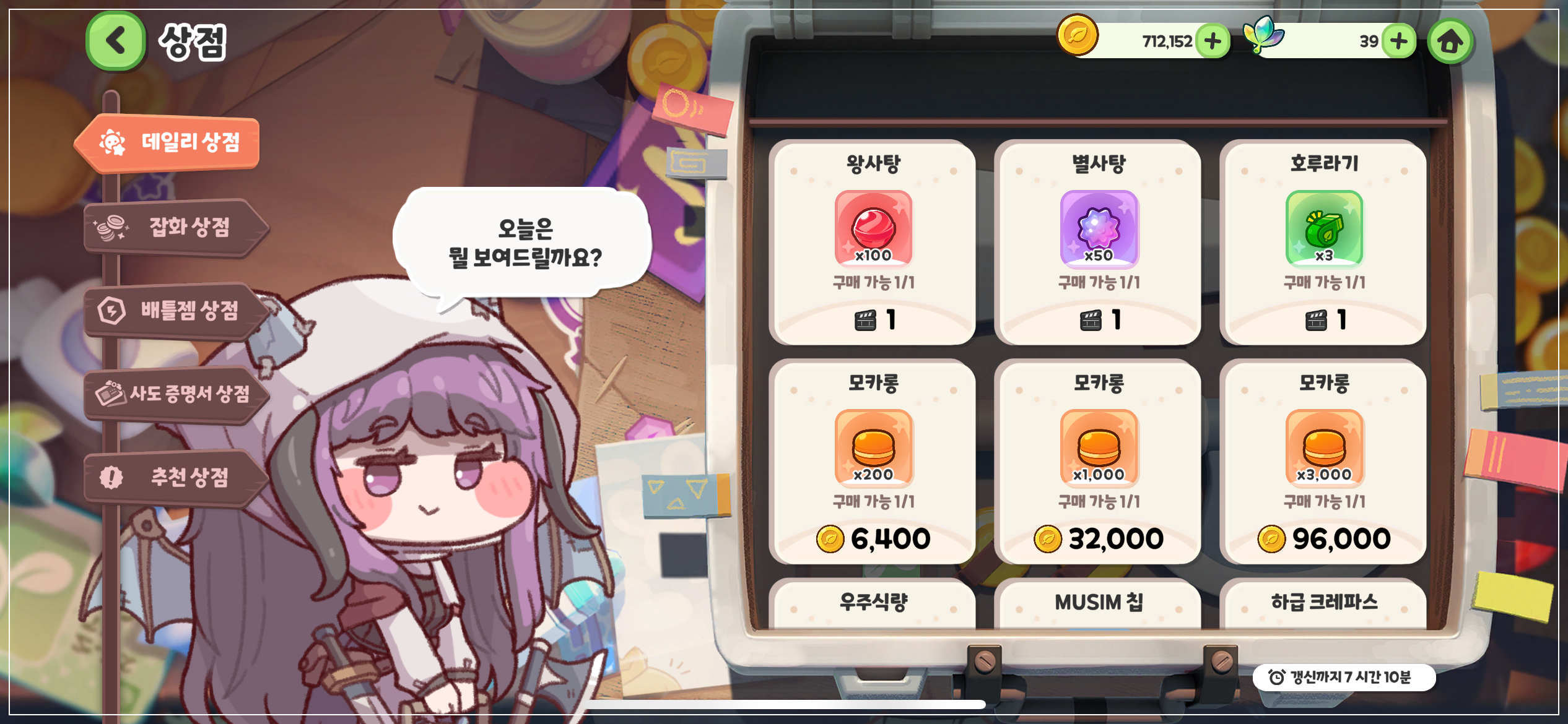 장비, 마시멜로, 모카롱을 전부 사세요.
