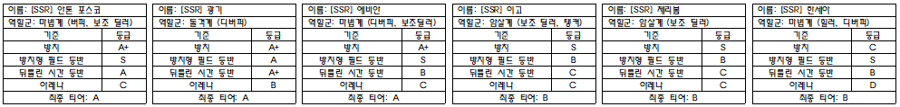 다른 게임의 캐릭터 등급표를 알고 싶으시다면
