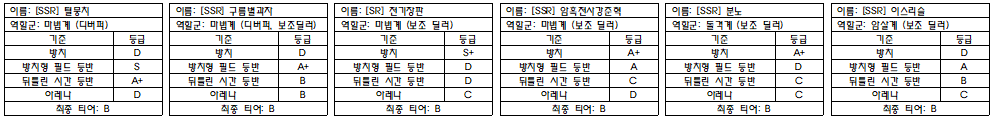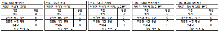 4티어: 암흑전사강준혁(서브딜) / 메이시아(힐) / 털뭉치(디버프)