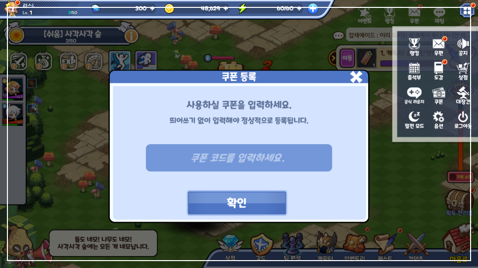 2023년 7월 24일 기준 쿠폰 코드입니다.