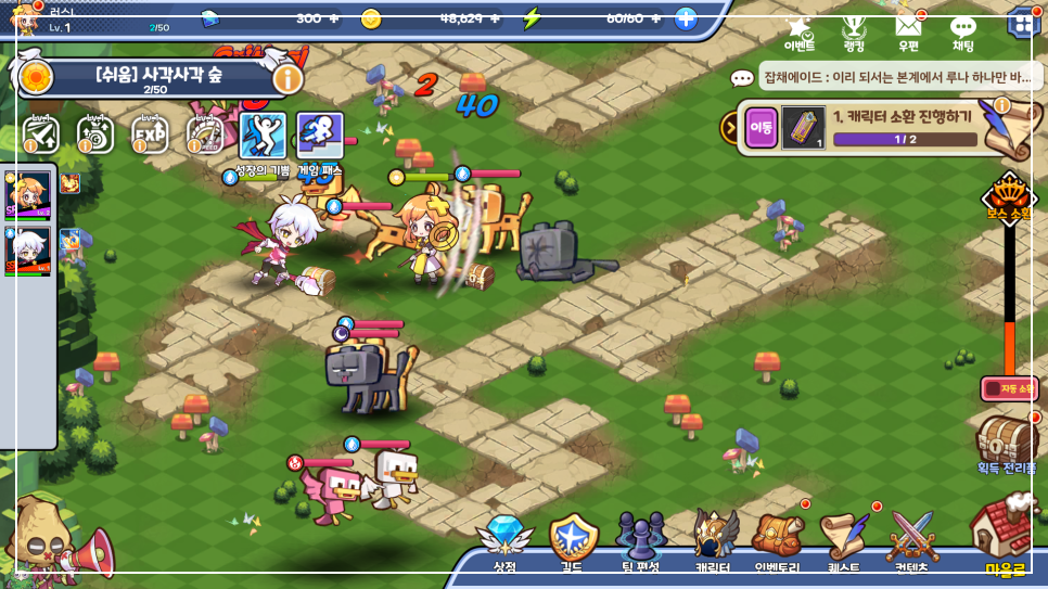 백그라운드 모드에서 자동 사냥으로 경험치와 성장에 필요한 재화 수급이 가능합니다.