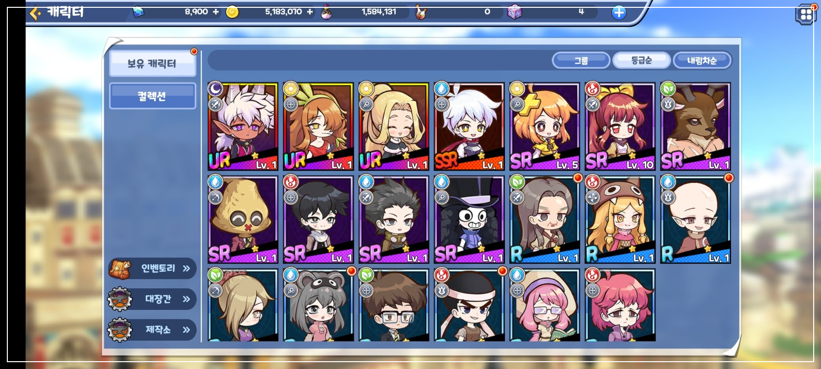 캐릭터의 등급은 [R < SR < SSR < UR]으로 나뉘어져 있으며