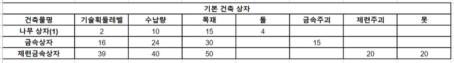 대형 먹이 주머니 기술 레벨 26 고대 기술 포인트 3 목재 20개