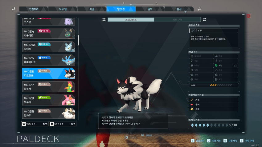 | 팰 이름 | 걷기 속도 | 달리기 속도 |