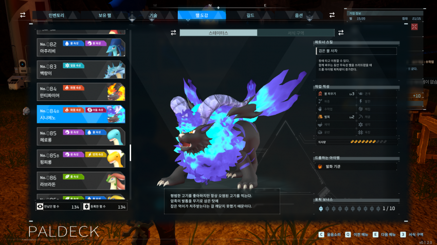 작업 적성 : 수작업 3, 채집 2, 제약 3