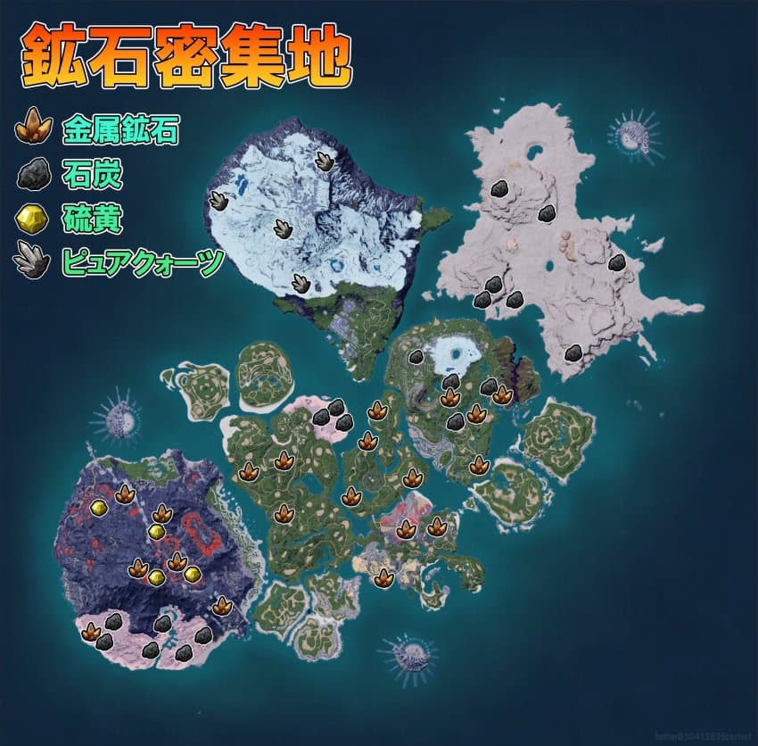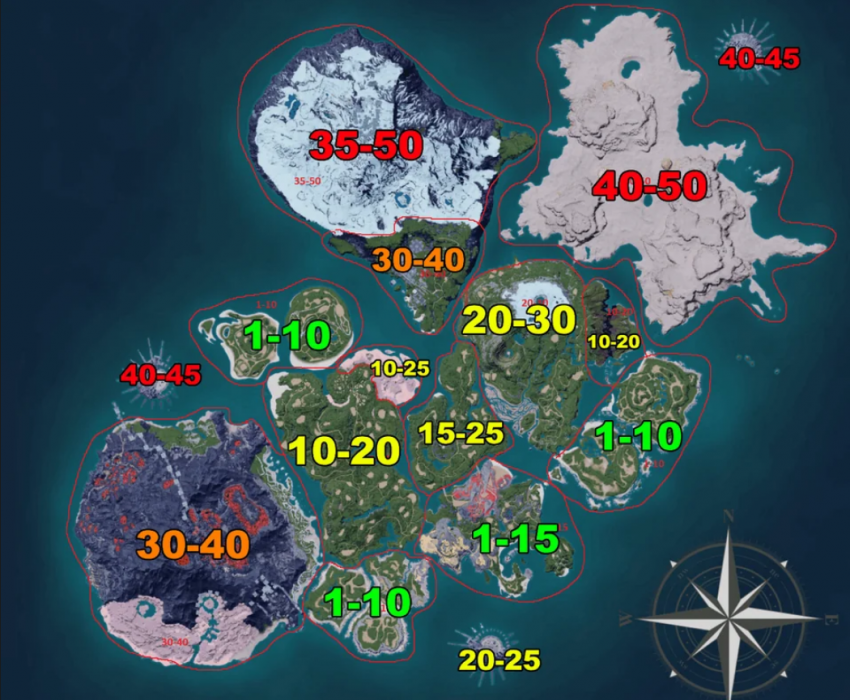중요 자원들이 나오는 지도와 팰 레벨 구역