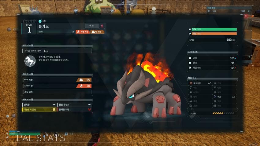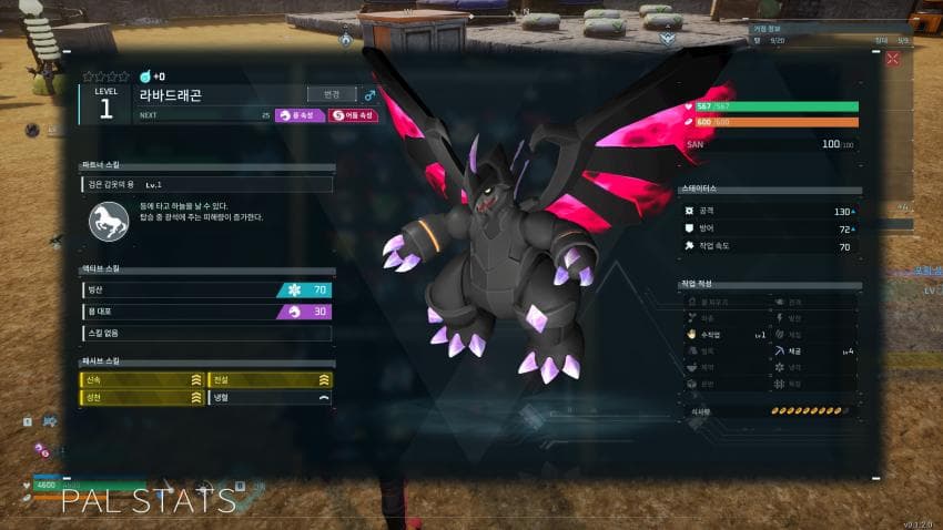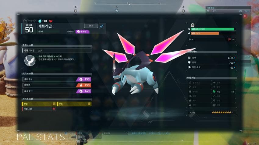 전투, 거점, 탈 것으로 추천하는 팰들 목록이
