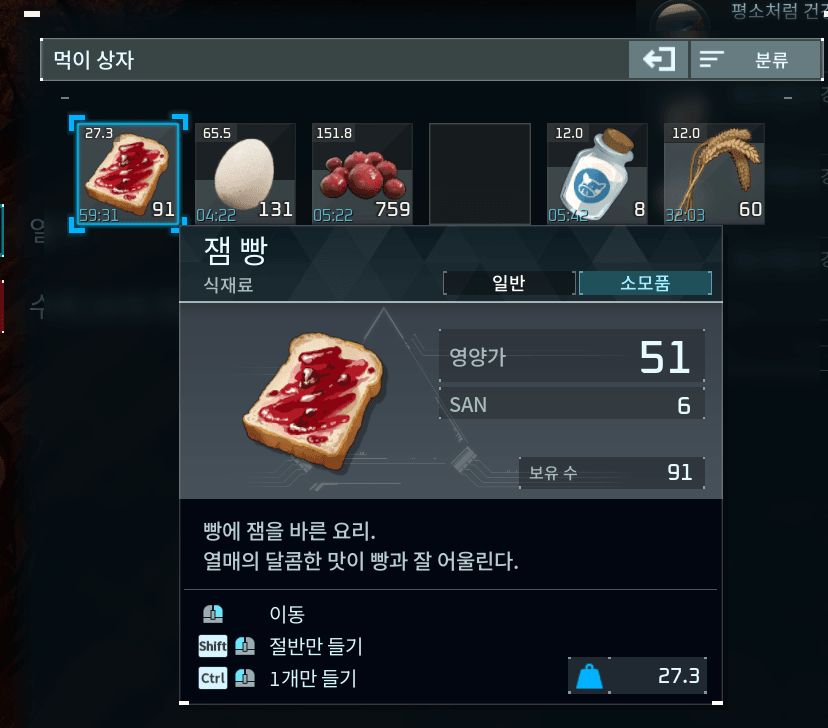 영양가가 높은 음식을 넣어서 팰들의 포만감을 채워서