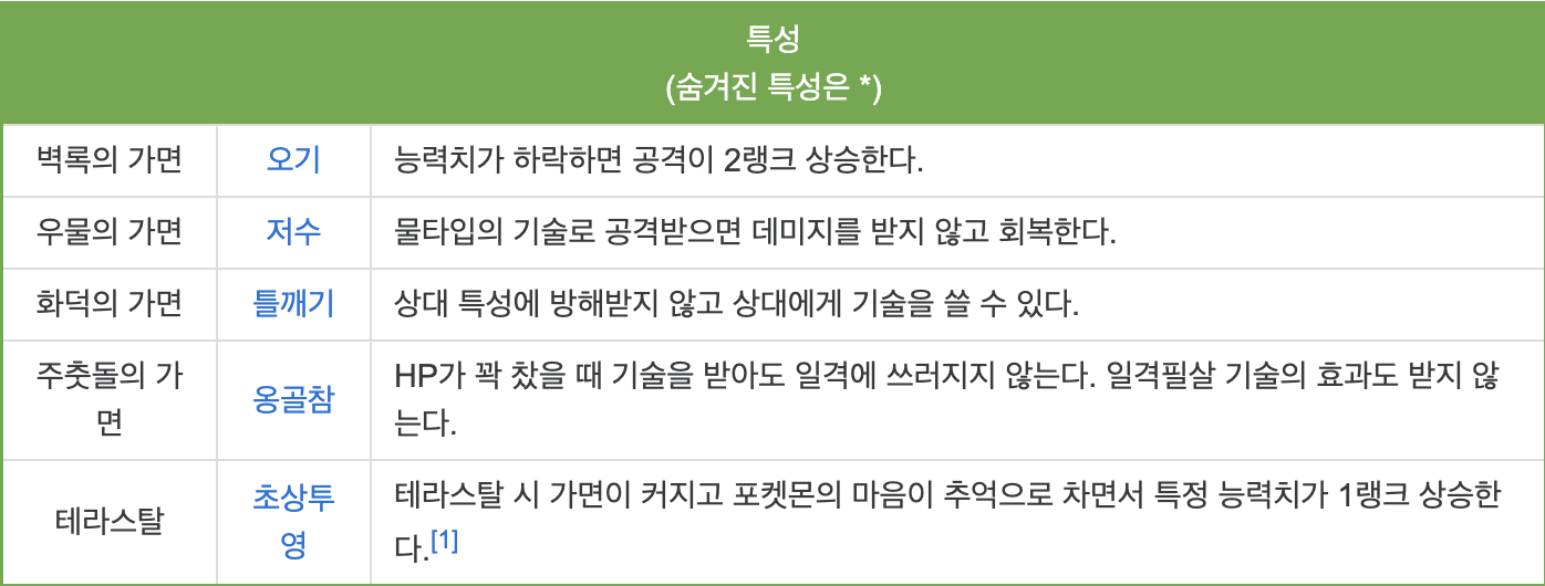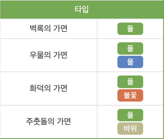 가면에 따라 바뀌는 건 특성과 타입입니다.