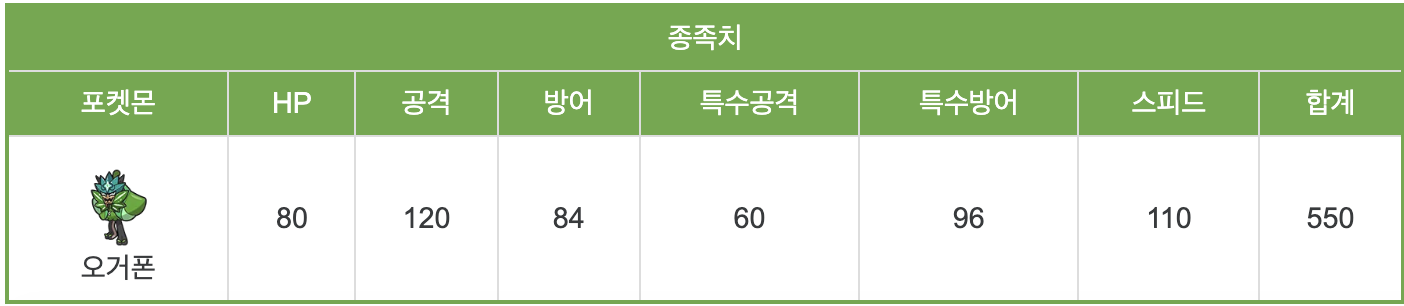 오거폰 능력치와 특성