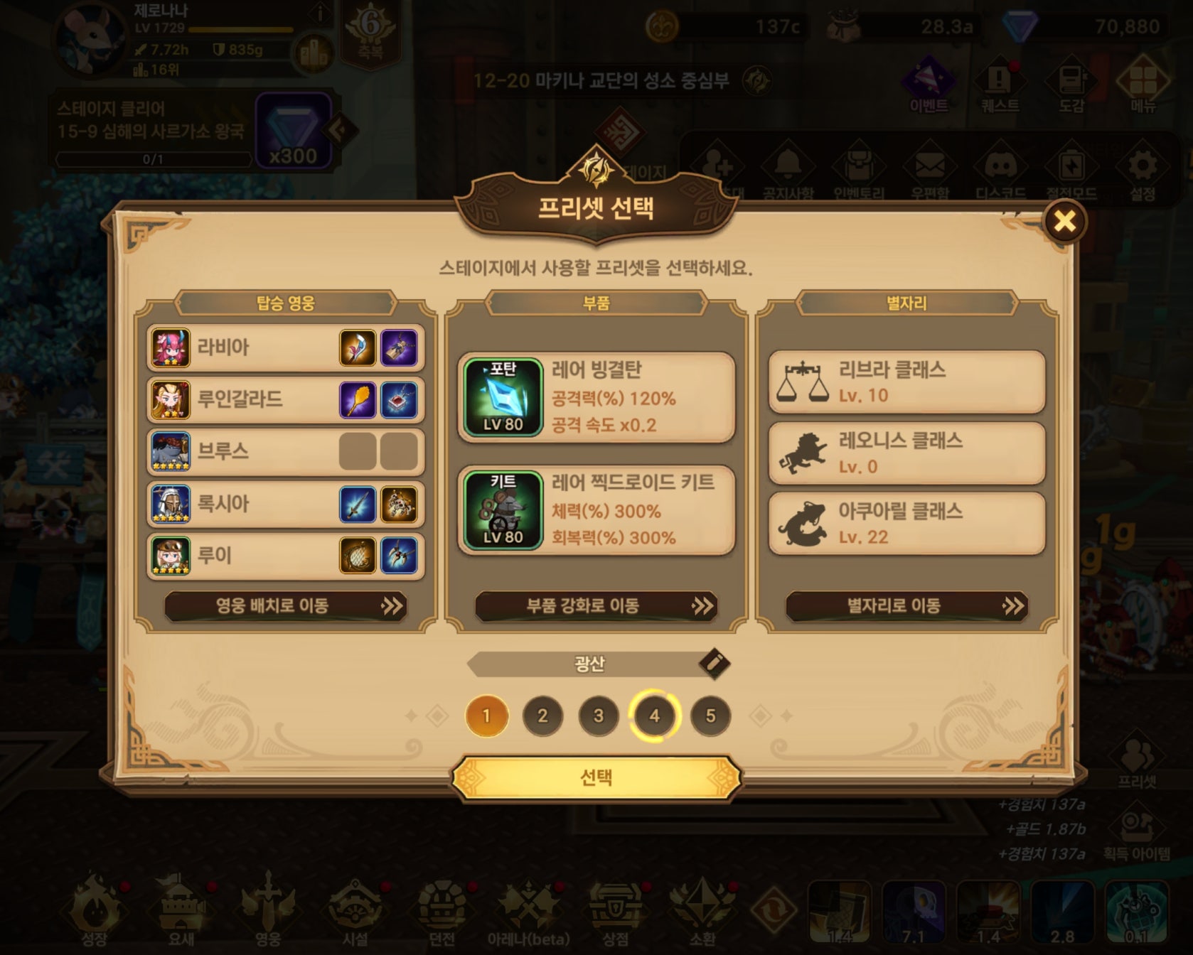 록시아 + 브루스 + 루인갈라드는 고정입니다.
