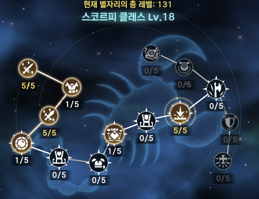 별자리는 총레벨에 따라서 2번째 별자리가 열립니다.