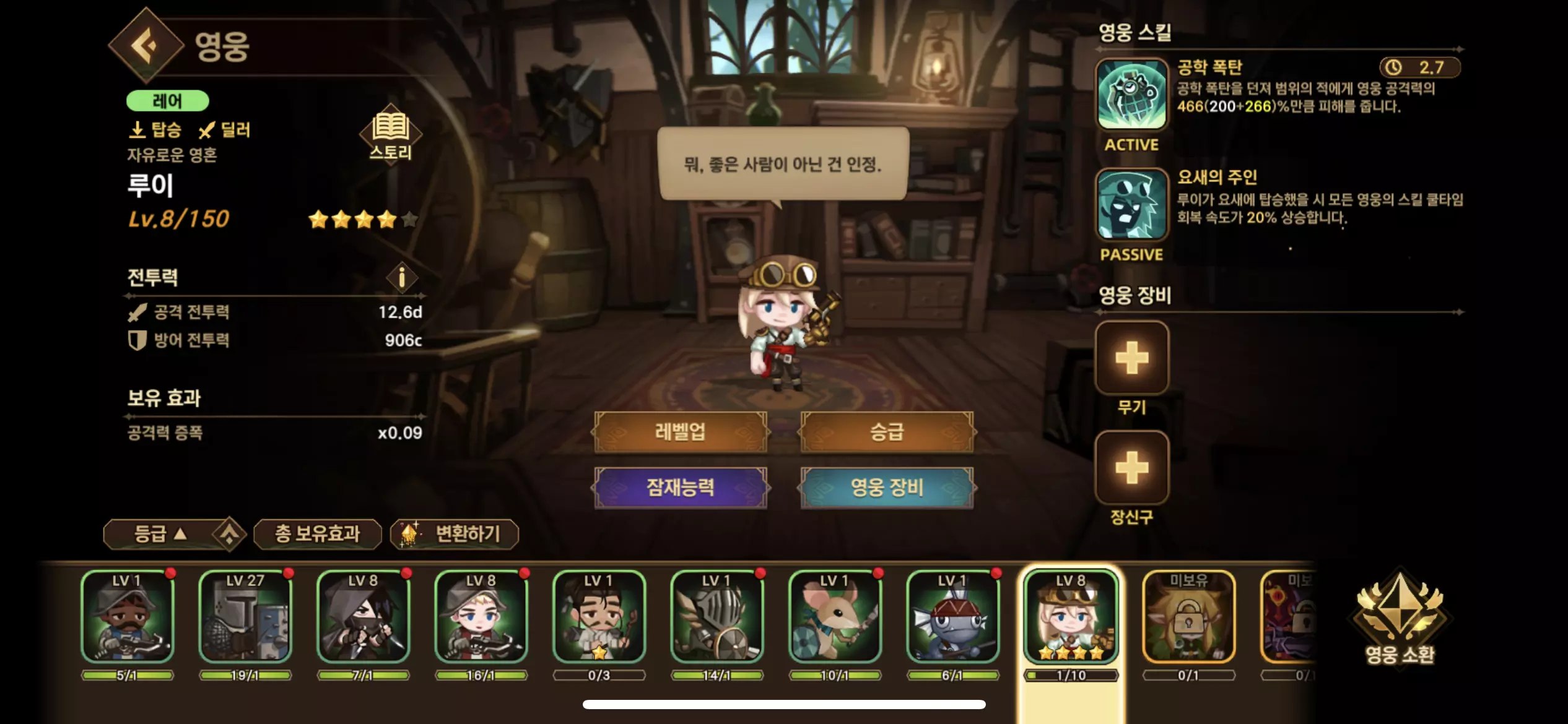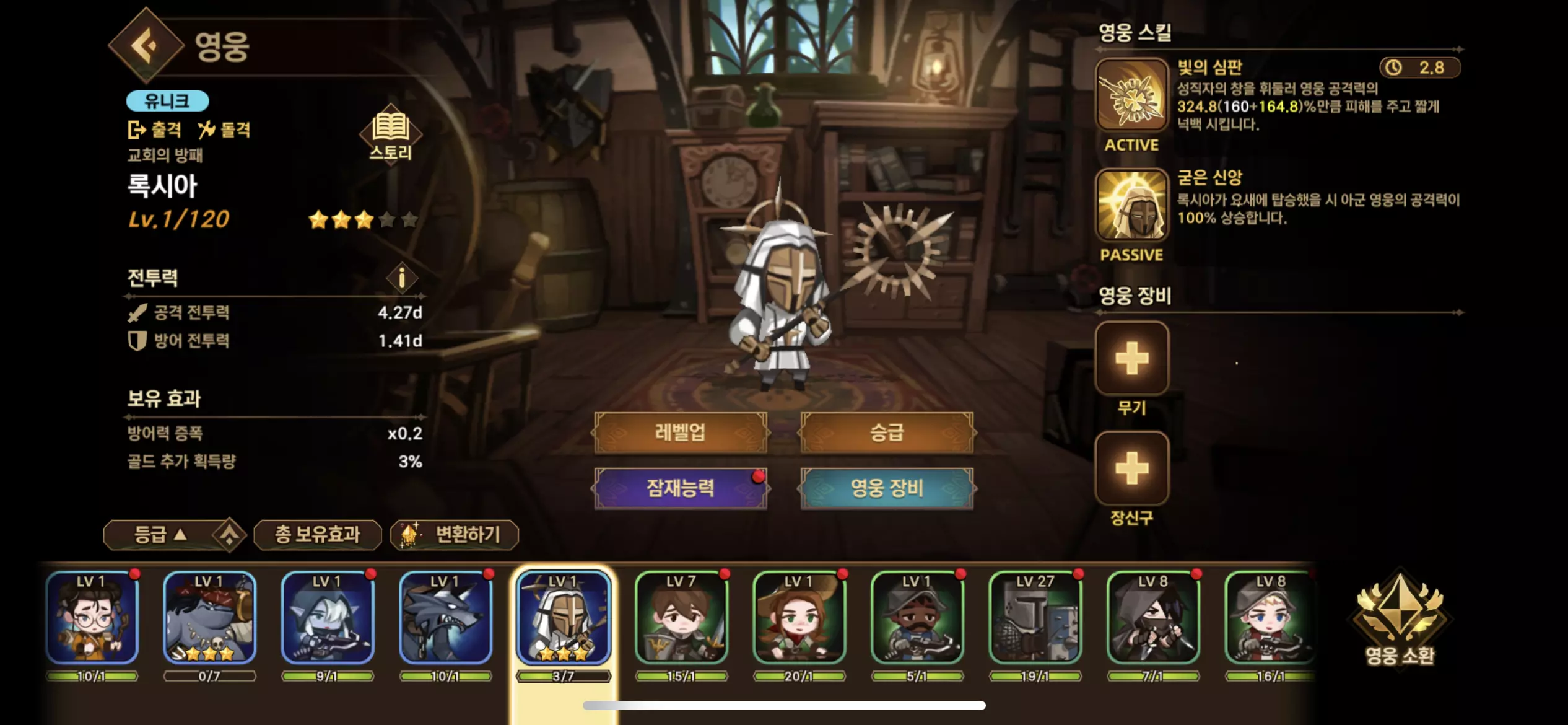 채용한다면 3페이지 레전드영웅 공격력을 찍는다.