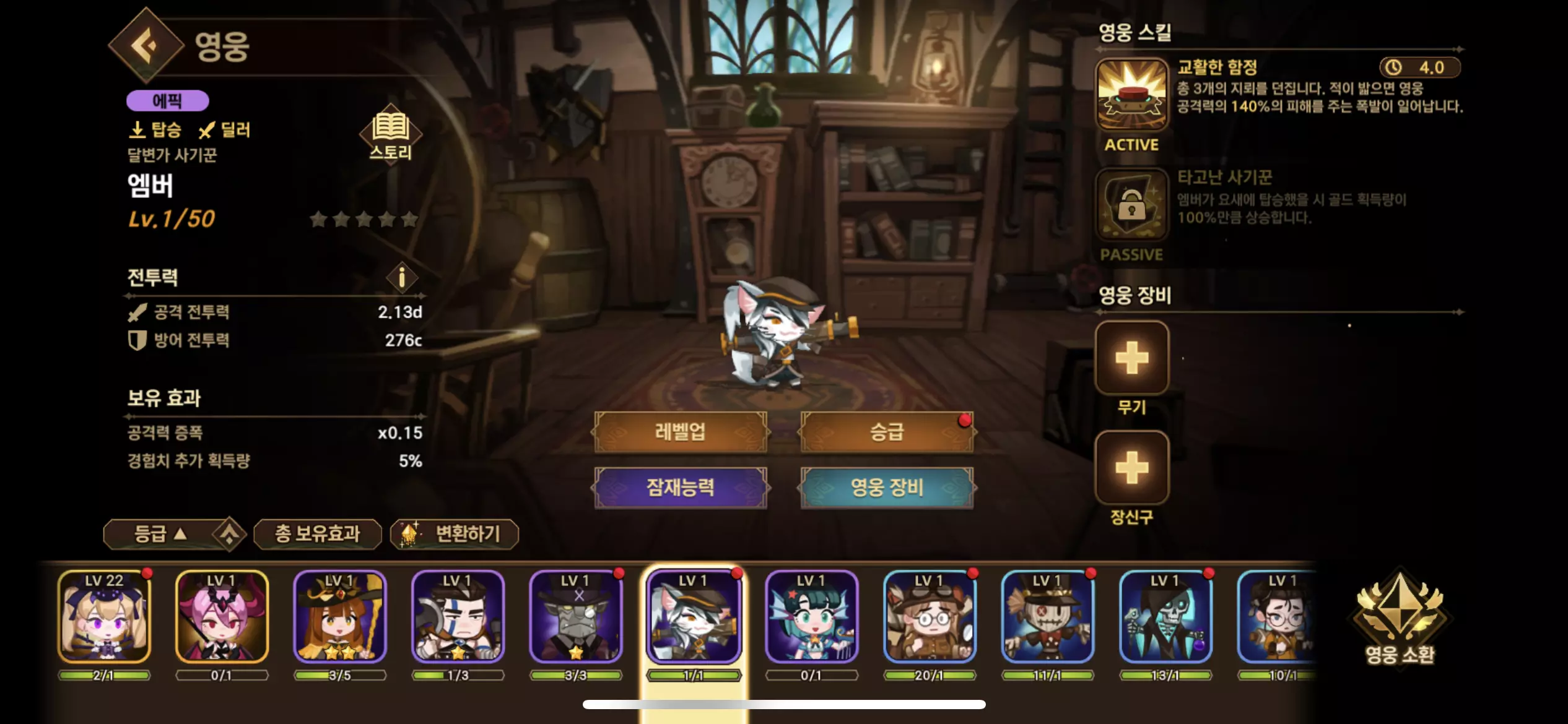 딜러영웅 스킬효과 및 3페이지 에픽영웅 공격력을 찍어준다.