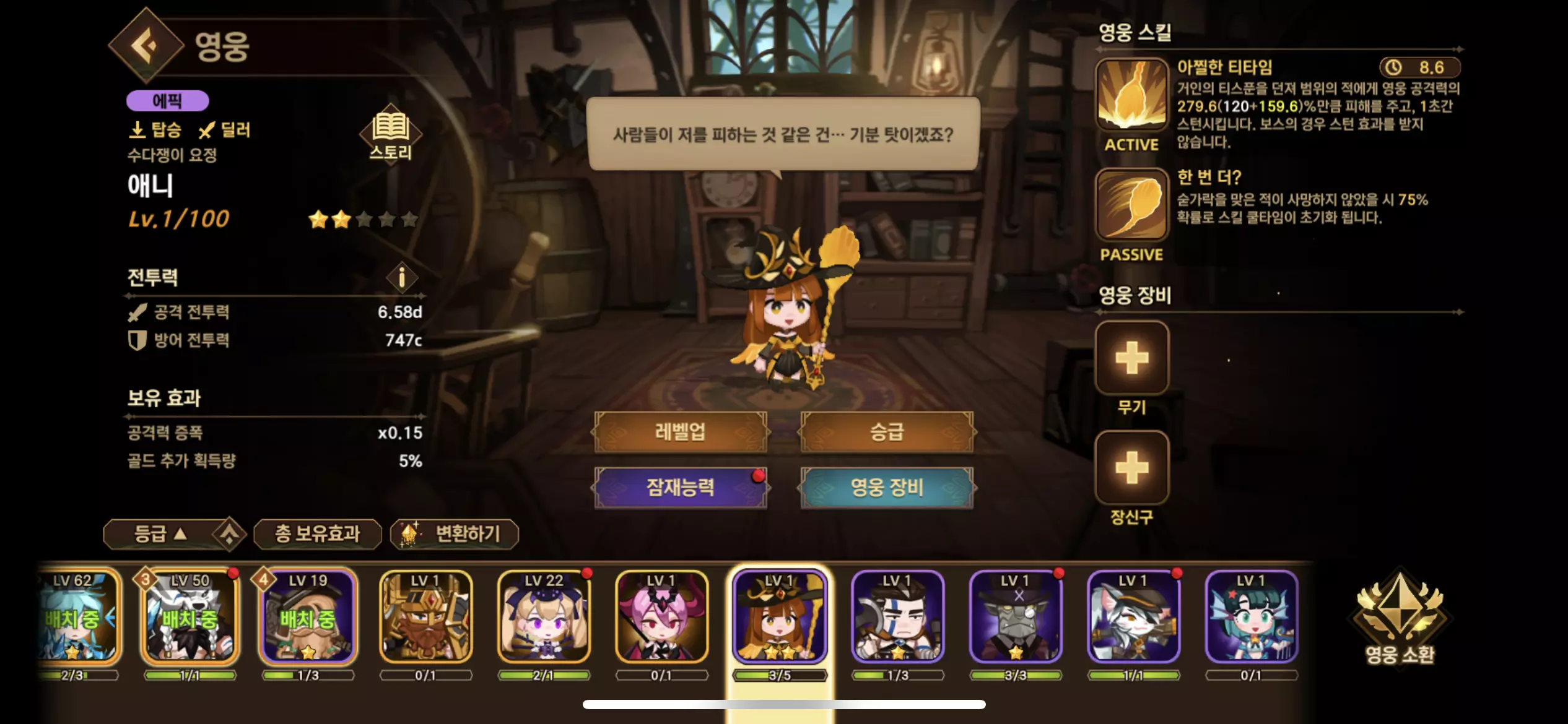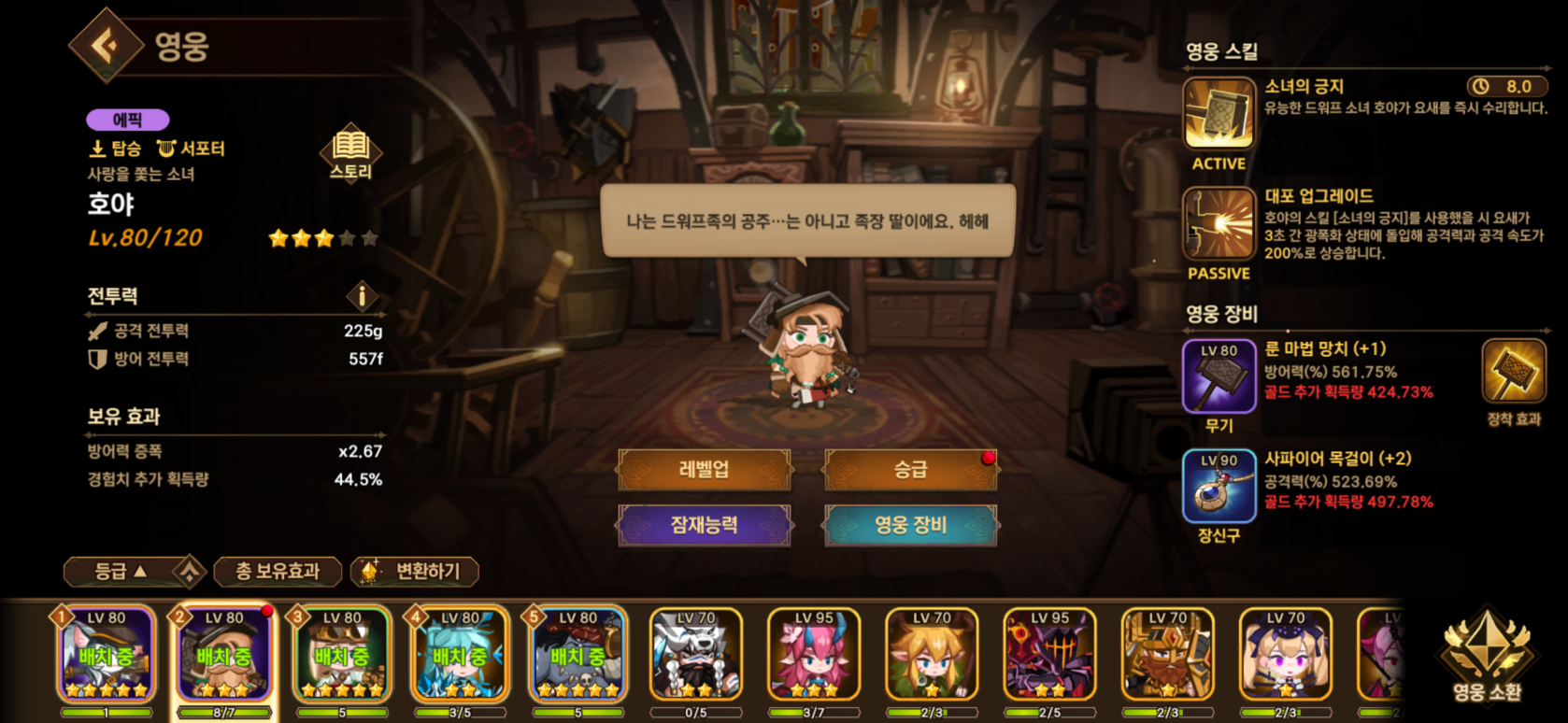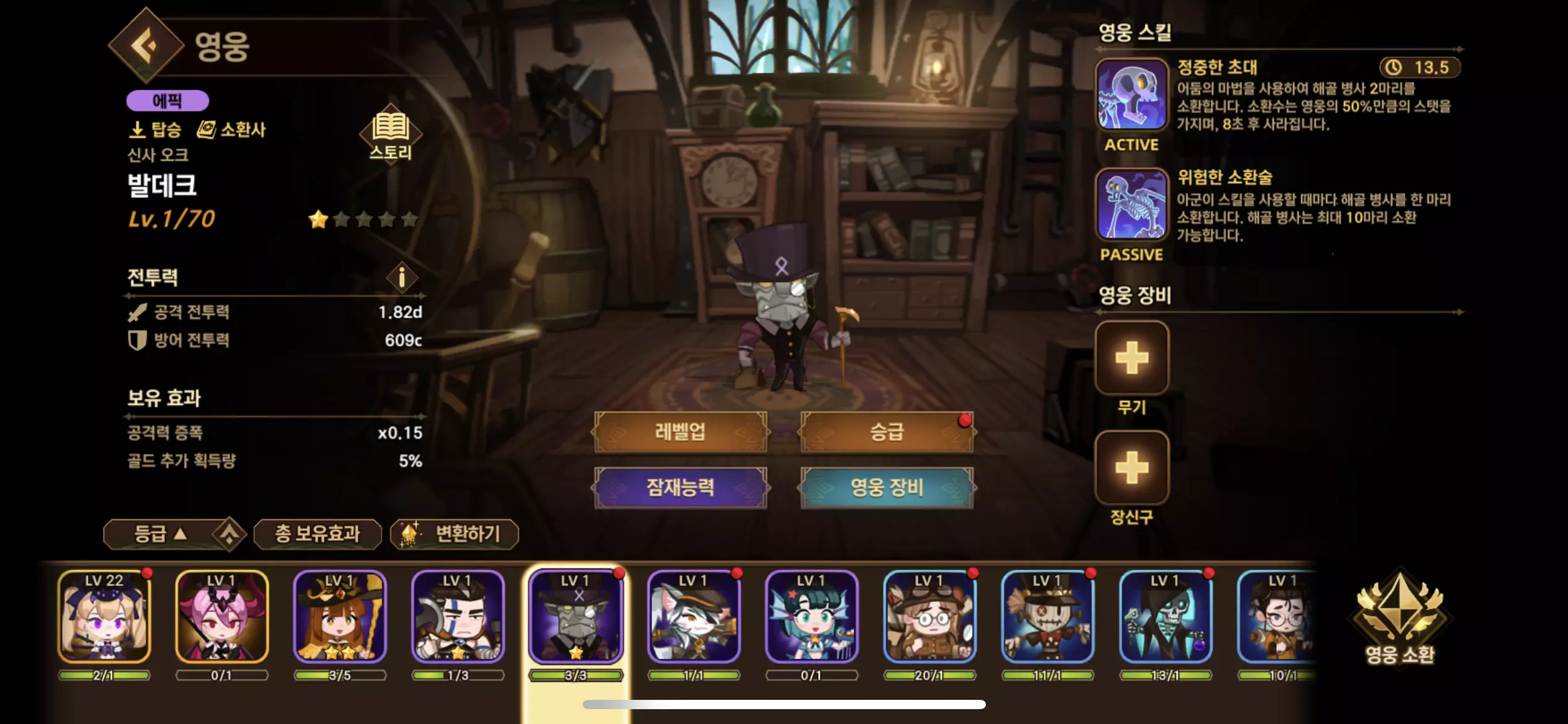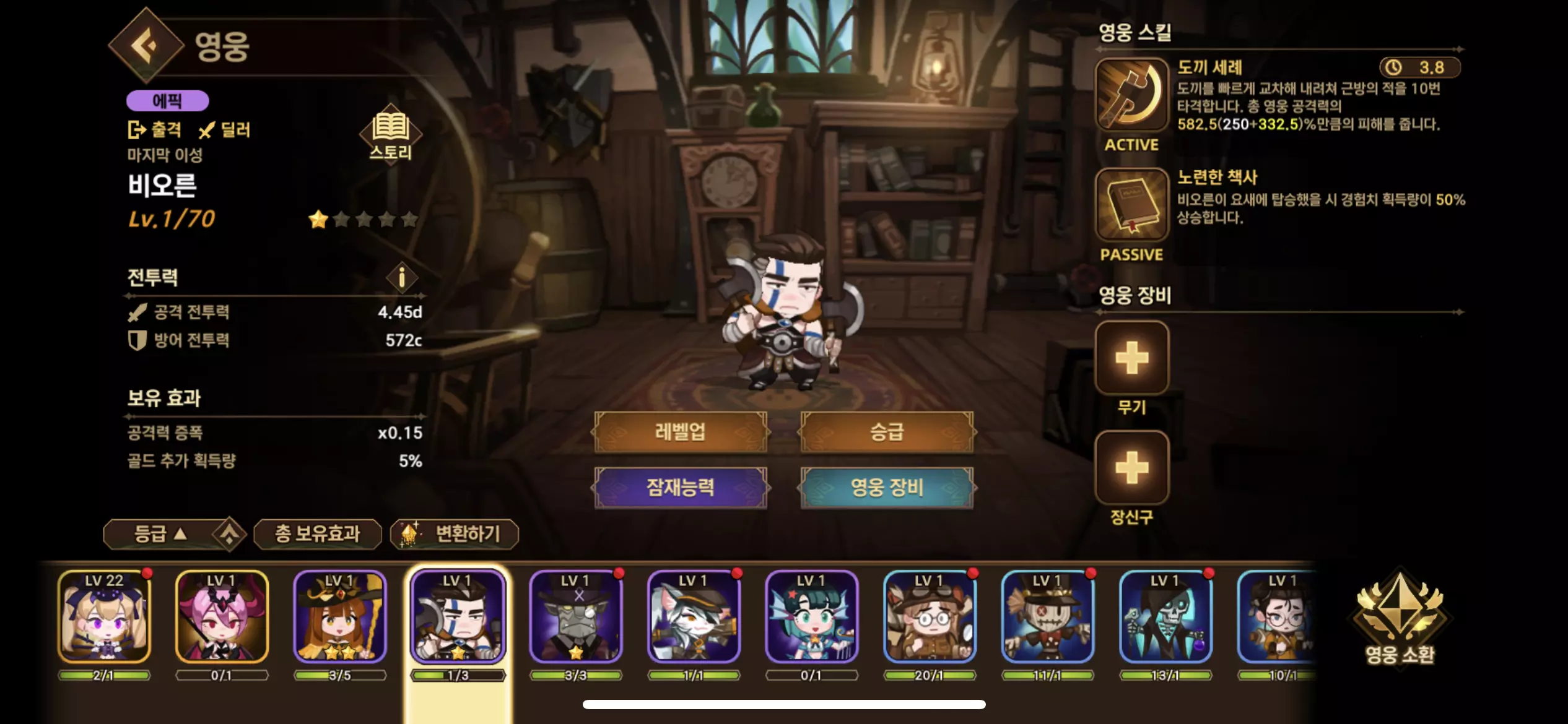 딜러영웅 스킬효과 및 3페이지 에픽영웅 공격력을 찍어준다.