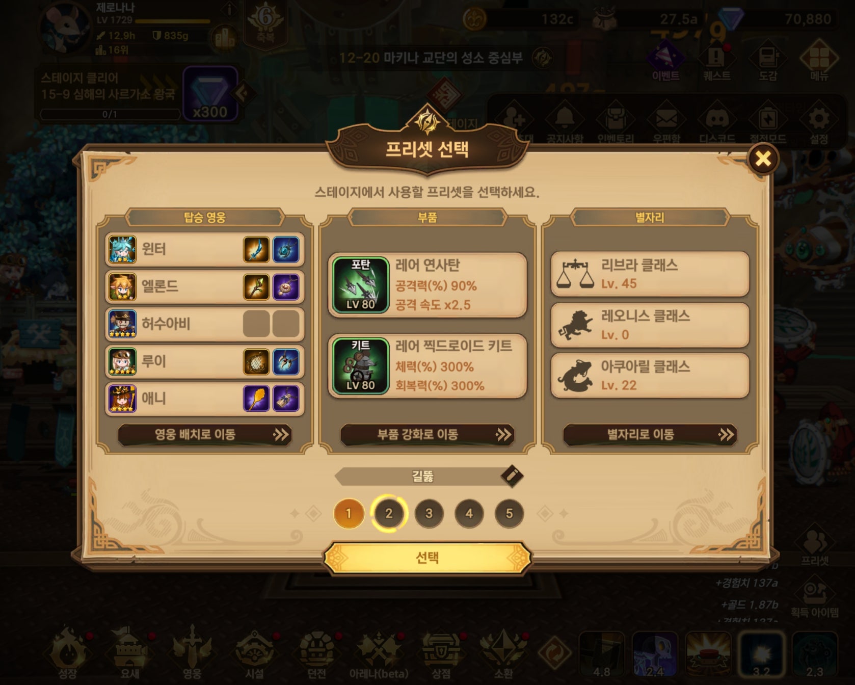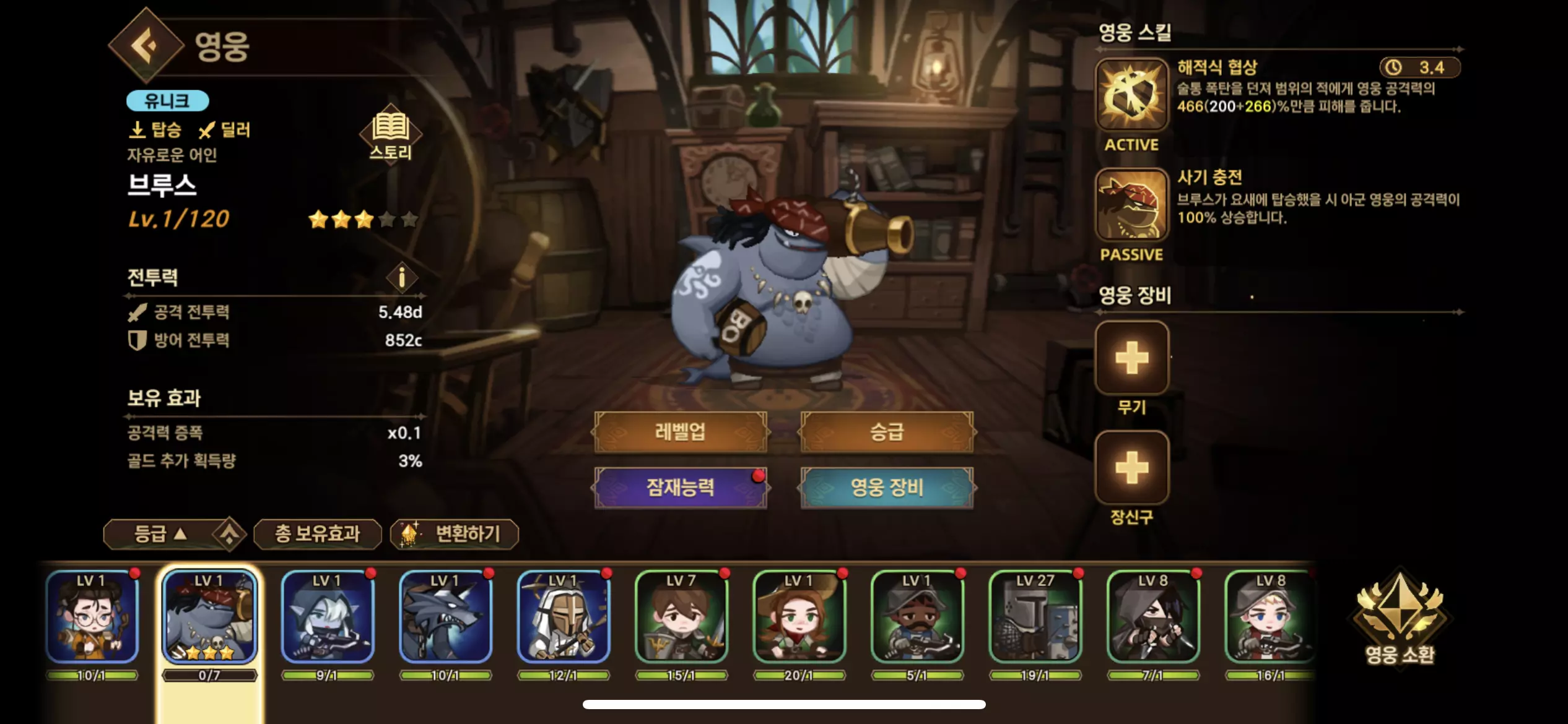 채용한다면 3페이지 레전드영웅 공격력을 찍는다.