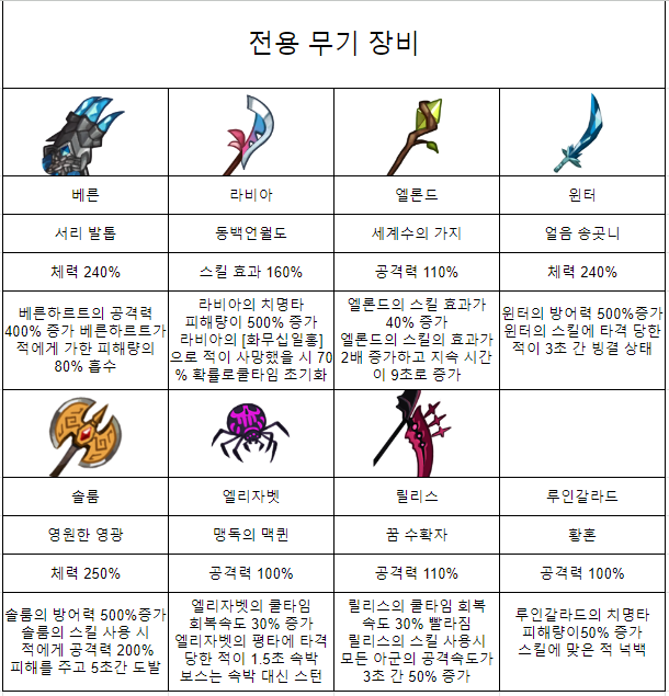 베른하르트(방깍+딜탱) 젤로스(cc기+폭딜), 릴리스(cc기), 엘리자벳(cc기+서브딜), 루인갈라드(공증버프+폭딜)