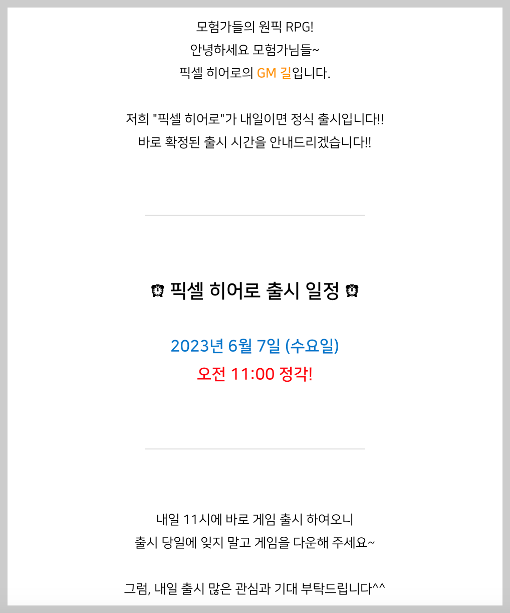 바로 픽셀 히어로입니다. 유조이게임즈라는 곳에서 출시되는 게임입니다. 6월 7일이 출시일인데요.. 바로 내일입니다.