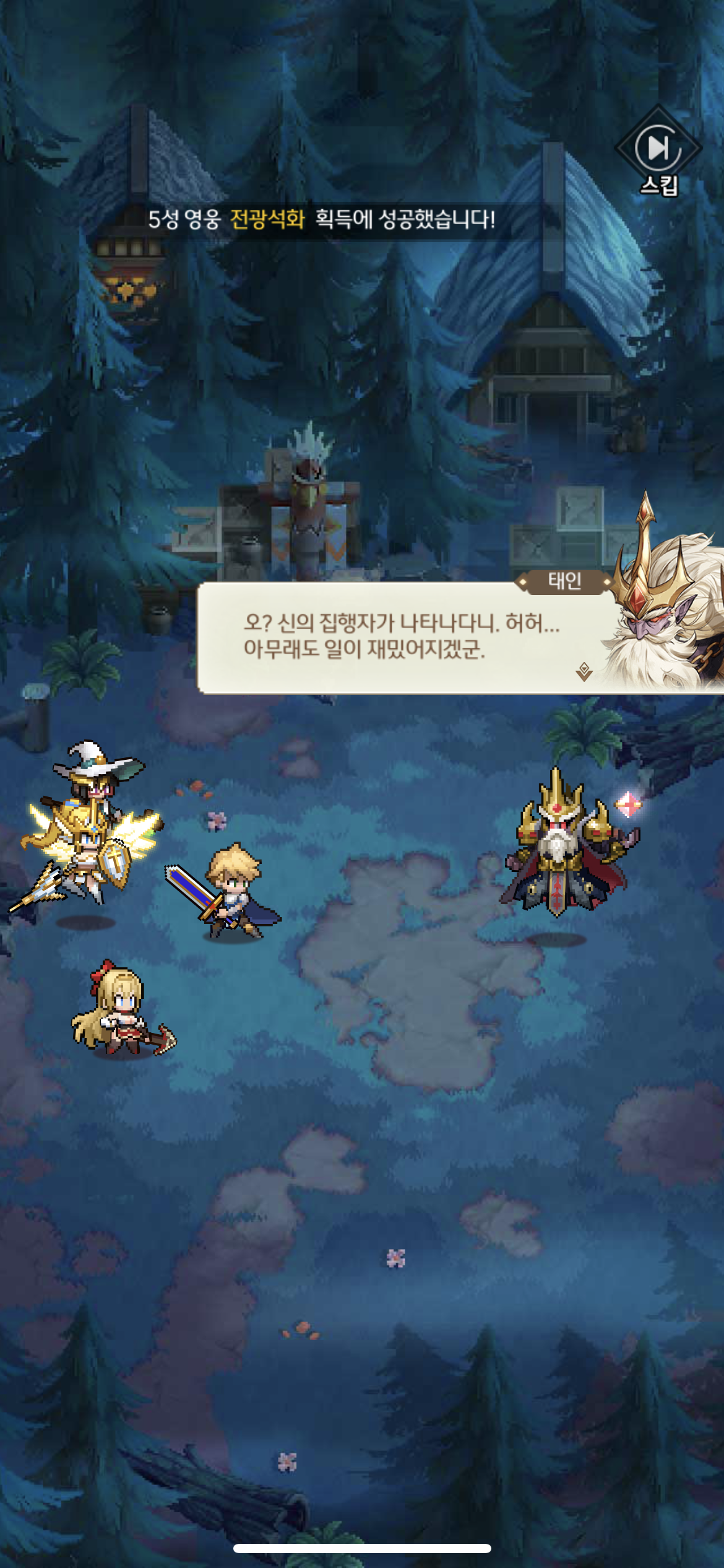 게다가 도트 그래픽치곤 이펙트도 괜찮았습니다. 6명의 영웅으로 속성별로 덱을 짜는 것도 괜찮았는데..